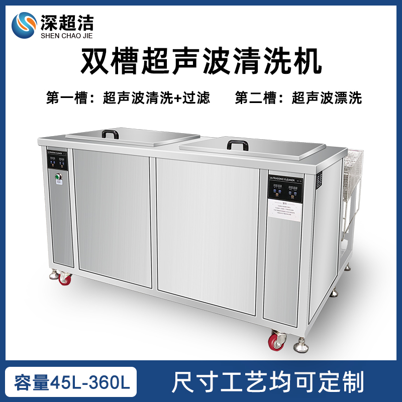 1、雙槽設計:設備采用雙槽結構,分為清洗槽和漂洗槽,實現清洗和漂洗過程的分離,確保清洗效果的獨立控制和漂洗的徹底性。